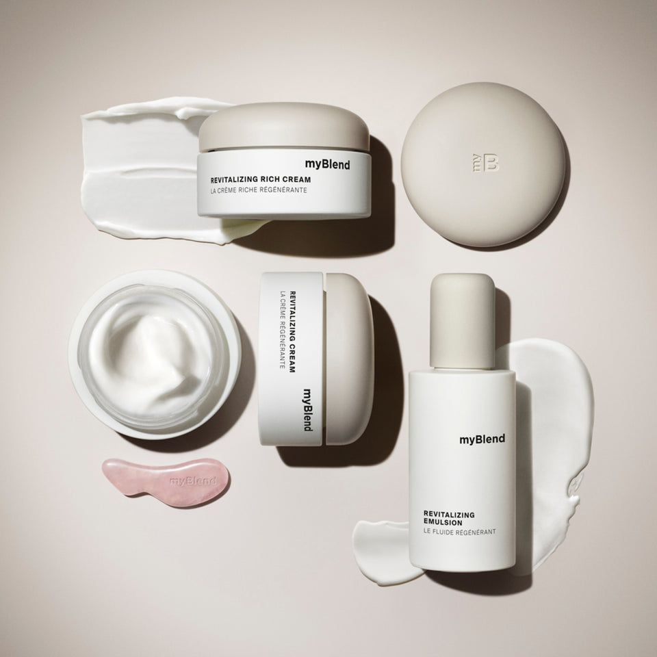 Aujourd'hui, la science et la technologie permettent un véritable prolongement de la cosmétique. Les dernières innovations myBlend stimulent directement les tissus cutanées pour réactiver les fonctions cellulaires clés, là où elles naissent.