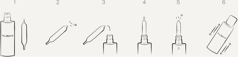 Lors de la première utilisation, cassez et versez l’intégralité de l’ampoule dans le flacon. Agitez.